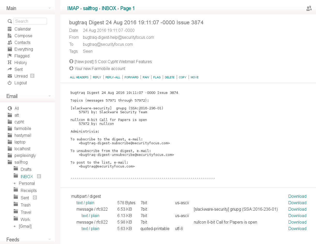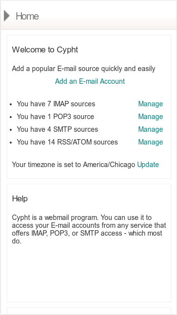 If you want a PHP enabled web server for your UI tests, and I assume you do since you read this far into the post, you need to install and configure that yourself. I cobbled together a couple of examples from the Travis docs and some various other blog posts to make this work. The example from the Travis docs works fine for PHP 5, however you have to work around an issue with a missing default pool configuration for FPM using PHP 7. I also wanted an IMAP account Cypht could connect to for a more real world experience, so my setup creates a system user to test with, installs Dovecot IMAP, tweaks the configuration slightly, and starts the IMAP service.
